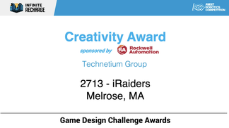 New England teams rose to the occasion, taking home 21 Game Design Challenge awards, 3 Innovation Challenge finalist nominations, and 15 Infinite Recharge at Home awards, in addition to 4 teams being named Skills Challenge winners and 4 becoming finalists.